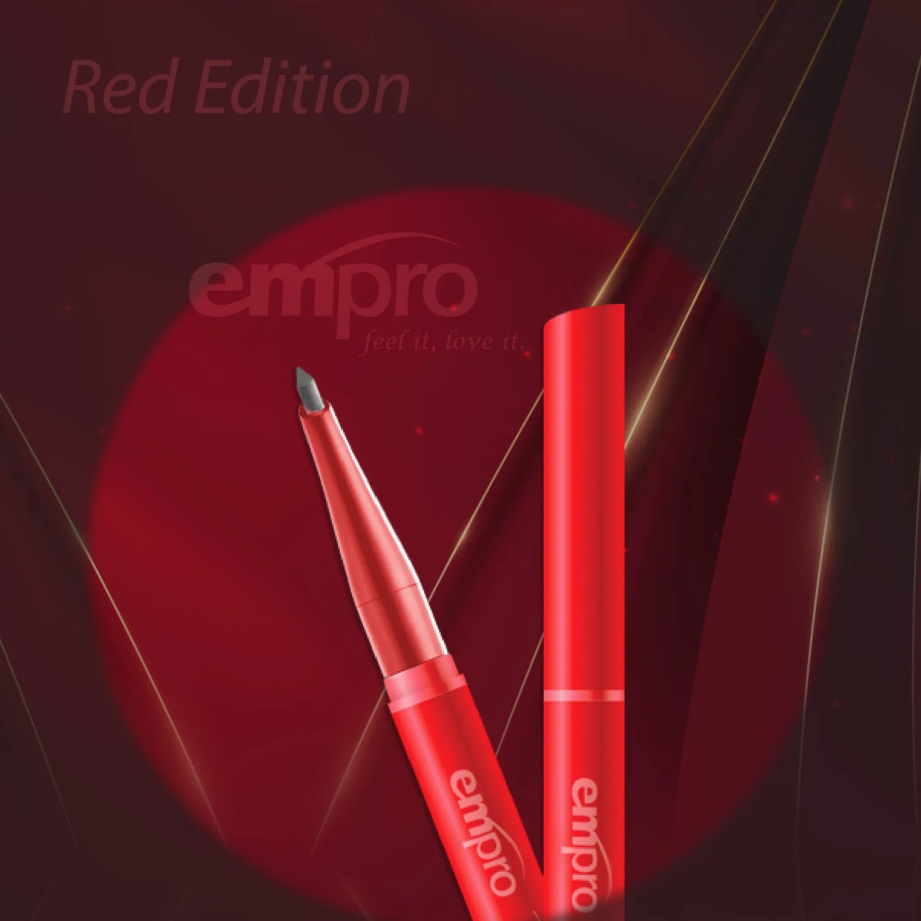 Perfekte øyenbryn kan oppnås med Empros nyutgitte Red Edition prisbelønte trekantede brynspenn. Første i verden med trekantet blyantspiss. Den er langvarig og krever ingen spissing.